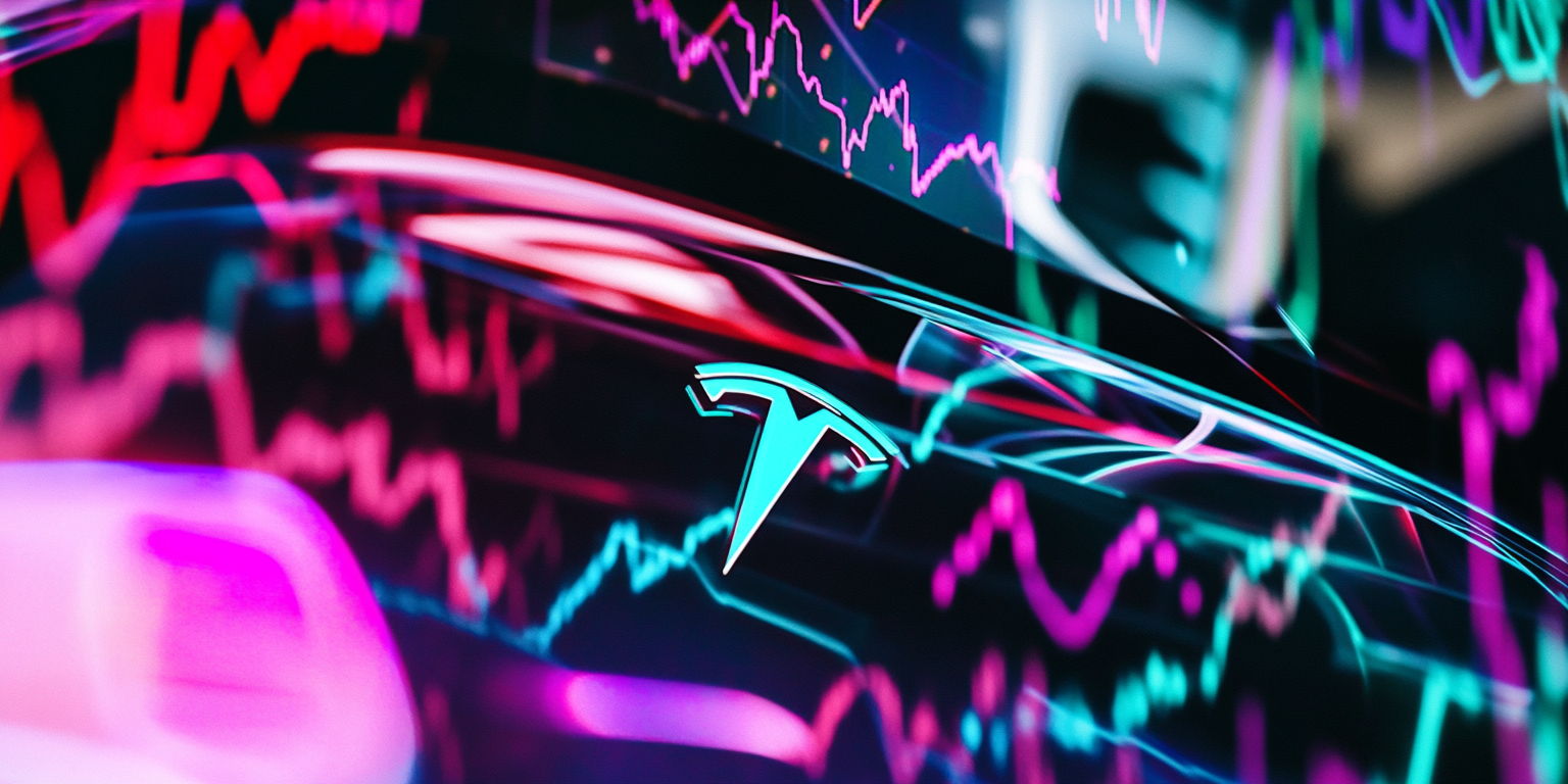 A borító képet FLUX.1-dev képgenerátor készítette az alábbi prompt alapján: A concerned-looking business analyst in a suit looking at Tesla stock charts declining on multiple screens, with a shadowy figure of Elon Musk in the background divided between business and politics, photorealistic style.